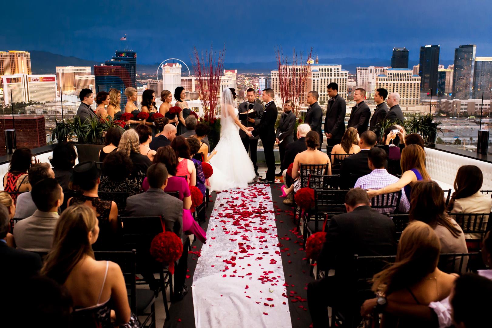 Often called the wedding capital of the world, Las Vegas has hundreds of different venues to choose from and hosts about 80,000 weddings a year. With this experience, Las Vegas has a wedding for just about everyone. Whether you desire a heartwarming wedding with lots of care and planning for the whole family to enjoy or want an adrenaline rushing wedding that is quick and exciting, Las Vegas has it all. Experience a truly magical wedding at the Primrose Courtyard at the Wynn where you can get married in an absolutely breathtaking experience enhanced by the water fountain and flowers all around. If you’re looking for a different whimsical experience, get married at the Mt. Charleston Lodge where snow heightens the romantic feeling of the wedding, and the surrounding nature creates beautiful scenery. There is also the opportunity to have a more adventurous wedding by getting married in a helicopter or 550 feet above the ground on the High roller. You could even have a themed wedding and get married by Elvis like some celebrities have, including Johnny Depp and more. Vegas will have the wedding for you.